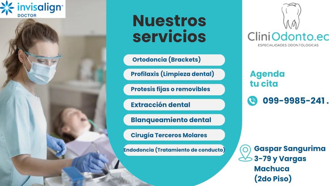 CONTáCTANOSBuscanos en Nuestras Redes Sociales Agende Aquí Google Facebook Instagram Whatsapp Web Dirección Teléfono 0999985241cliniodonto.ec@hotmail.com Dirección Gaspar Sangurima 3-79 y Vargas MachucaCuenca-Ecuador Horario Lunes: 09.am-18.pmMartes: 09.am-18.pmMierc.: 09.am -18.pmJueves: 09.am-18.pmViernes: 09.am-18.pmSabado: 08:30am-15.pmDomingo: Cerrado
